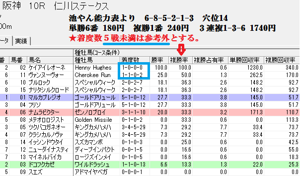 複勝率3位 能力表4位の10番ヒロノプリンス 単勝420円 複勝210円