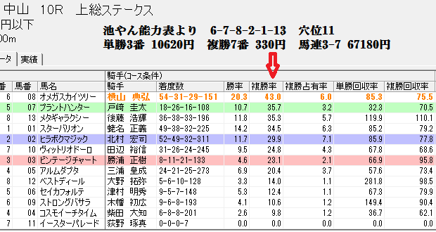 池やん能力表で馬番のある馬を順次2頭選ぶ。